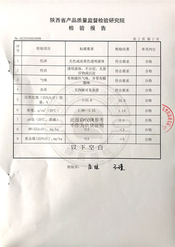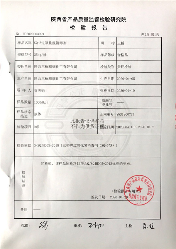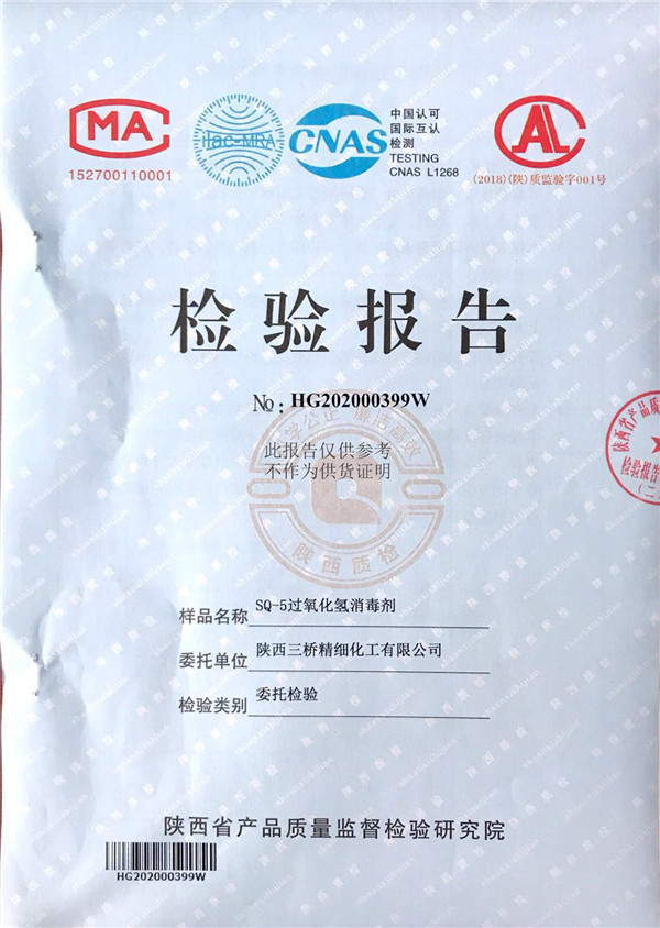 三橋牌過氧化氫消毒劑消毒液檢測報(bào)告(2020年度)