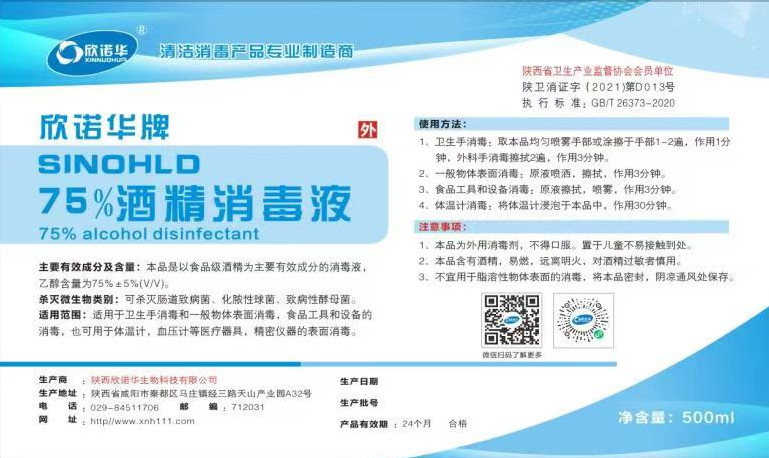 陜西欣諾華生物科技有限公司是一家專業(yè)生產(chǎn)75%酒精消毒液的廠家,消字號(hào)產(chǎn)品,使用更安心。