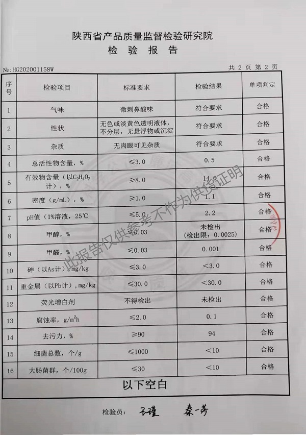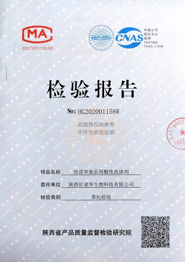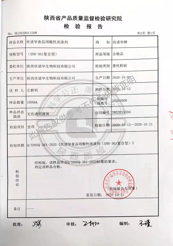 欣諾華食品用酸性洗滌劑(XNH-361復(fù)合型)檢測(cè)報(bào)告(2021年度)-陜西欣諾華生物科技有限公司