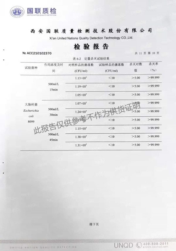 欣諾華牌次氯酸鈉消毒液(XNH004型)檢測報(bào)告