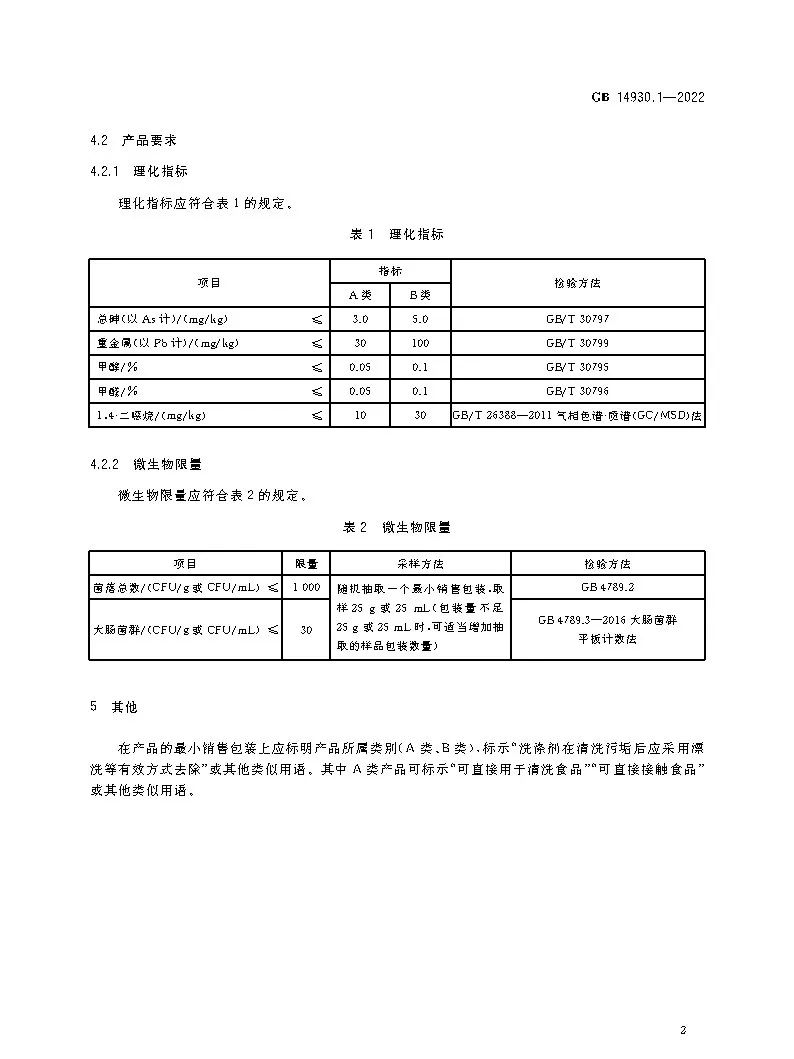 GB?14930.1-2022《食品安全國家標準?洗滌劑》即將實施